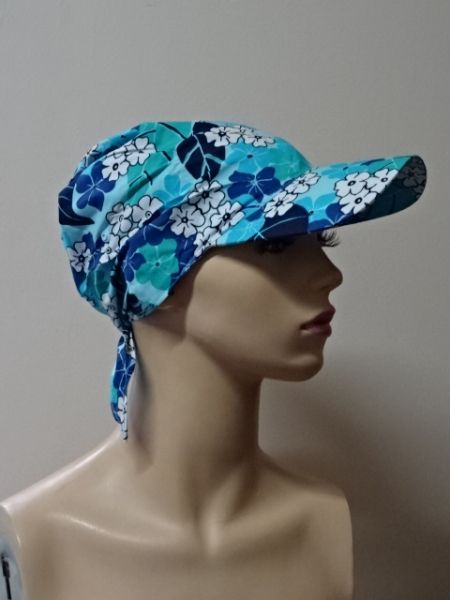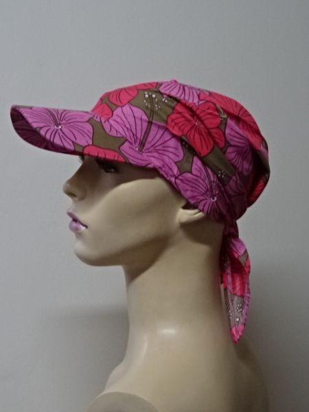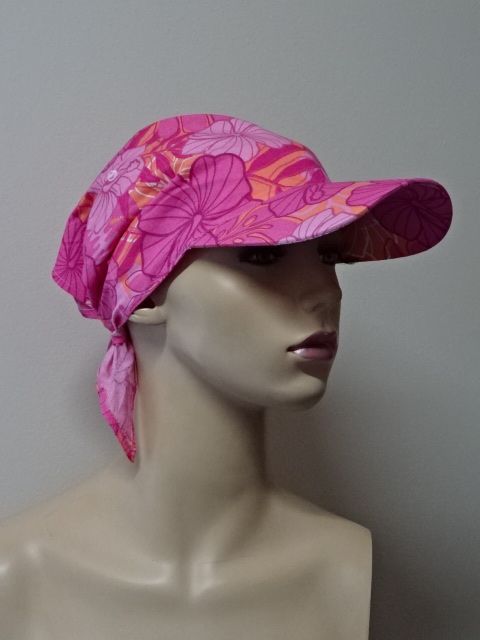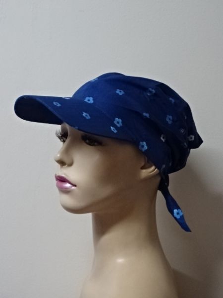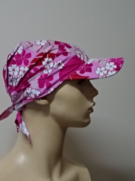Detská trojcípa šatka so šiltom vzadu na uviazanie.