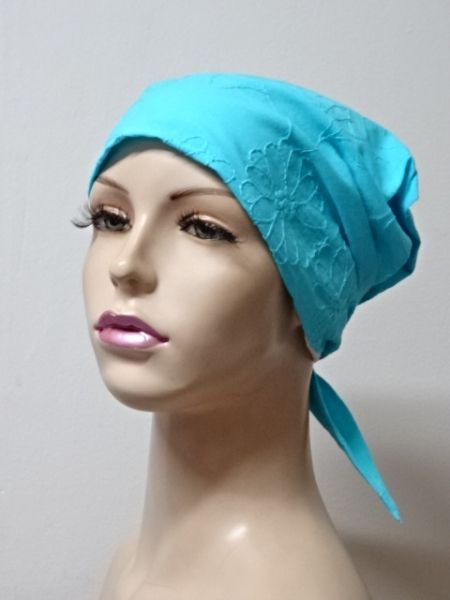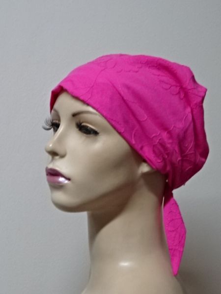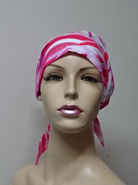 Táto bavlnená šatka je najpredávanejším produktom a je vhodná najmä pre onkologických pacientov. Na zátylku je všitá gumička a šatka sa uväzuje do uzlíka. (viď obrázok)