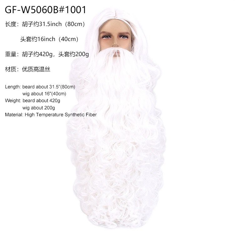 Set sa skladá z parochne a dlhej brady s fúzam. Parametre setu sú nasledovné: Brada - dĺžka 80 cm, parochňa - dĺžka 40 cm.