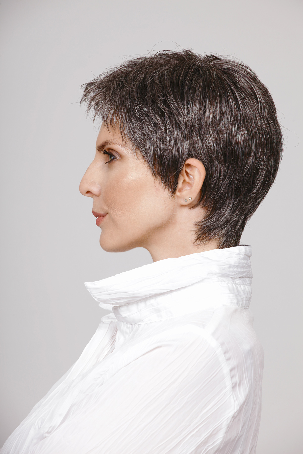 Spracovanie: Tresovaný-strojom ušitý model s prevedením Lacefront v prednej časti. To znamená, že vlákno je ručne naviazané do priesvitného tylu. Po nasadení parochne na hlavu pôsobia vlasy nad čelom, ako vyrastené z pokožky. Parochňe je príjemná na pokožku, vzdušná a má nízku hmotnosť.